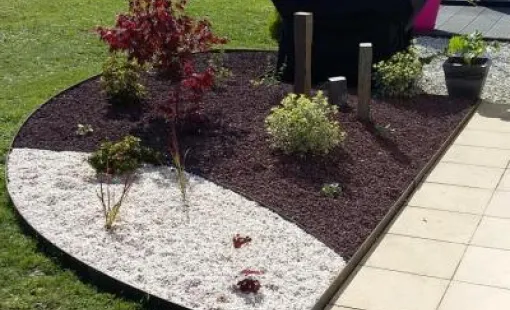 La société passion fleur et gazon est intervenue sur la commune de Cognac pour aménager un massif autour d'une maison avec la pose de bordure, d'une toile anti adventiste, la plantation d'arbustes,…